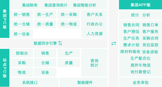 整合:多系统整合、多业务整合、多组织整合,为混凝土企业提供一体化服务。
