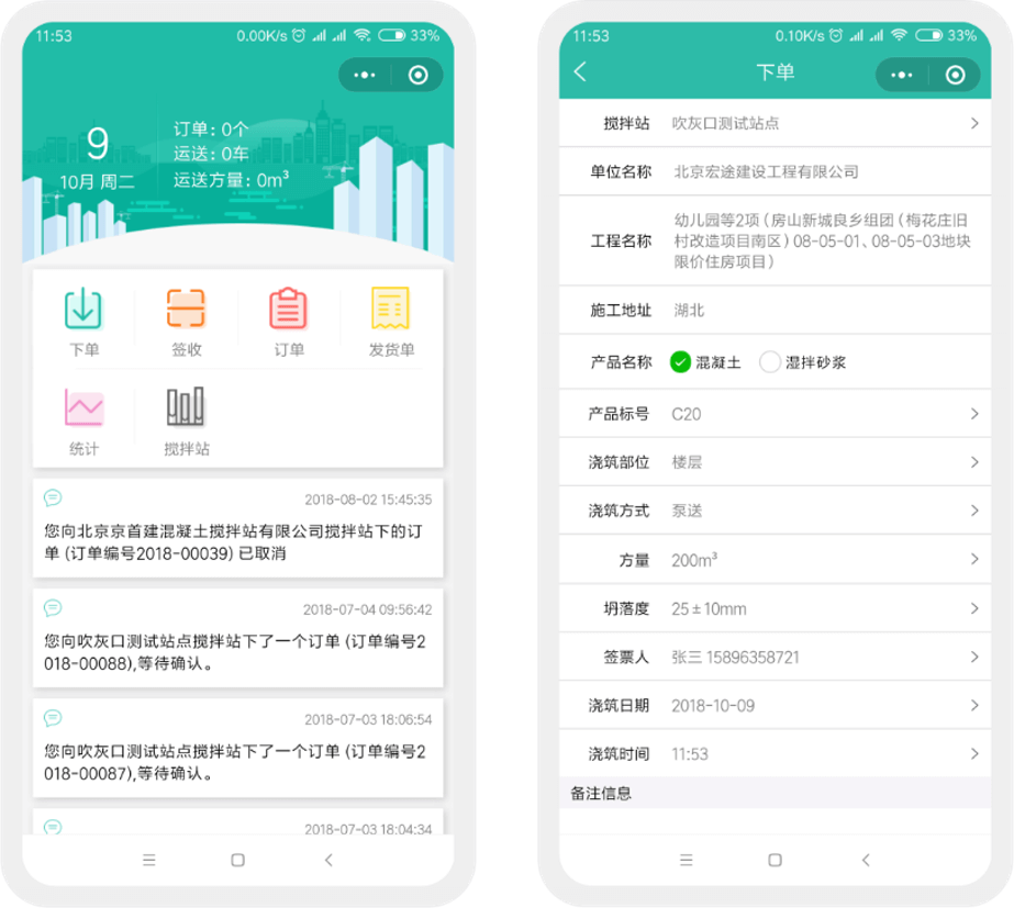 支持搅拌站APP及工地微信下订单
