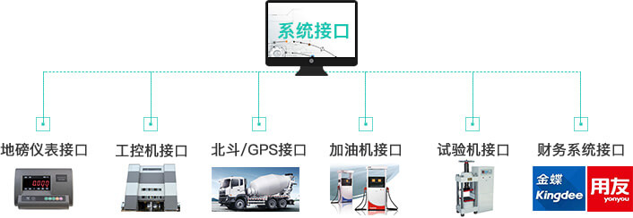 成熟的系统接口:必备的地磅、工控机接口,丰富开放的北斗/GPS、加油机、试验机、财务系统等对内对外接口。